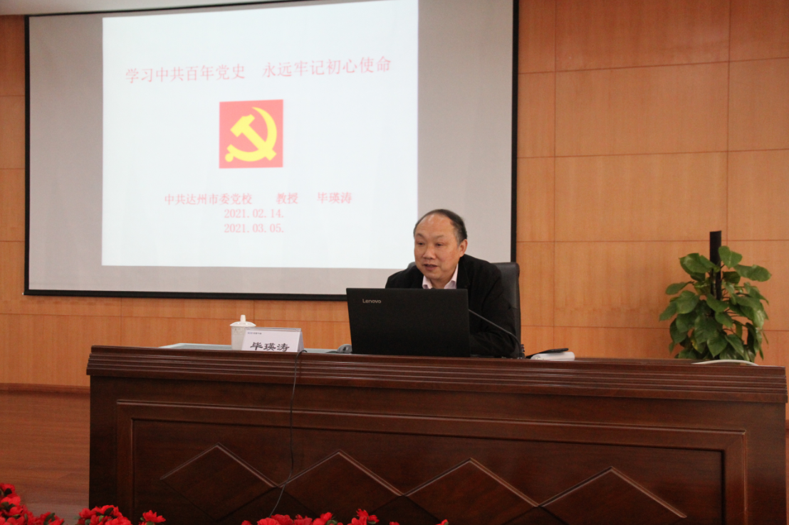 为深入贯彻《中共中央关于在全党开展党史学习教育的通知》和集团公司党史学习教育工作部署会会议精神,激发党员同志的党史学习热情,3月31日,川投气电公司邀请中共达州市委党校副校长、教授毕瑛涛为公司全体党员和入党积极分子上了一堂以“学习百年党史 不忘初心使命”为主题的专题党课。公司党委副书记、工会主席包婷婷主持。