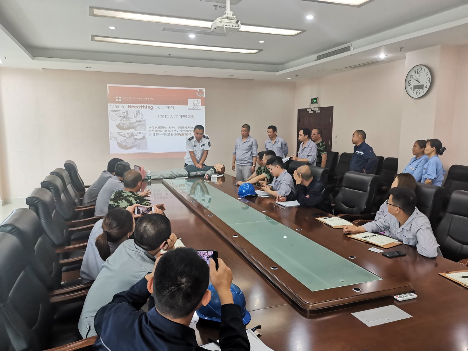 此次培训以贴近生产生活为原则,内容通俗易懂,层次分明,环环相扣。根据公司实际,为提高广大职工急救能力,鑫政培训机构教官着重讲解了心肺复苏的实际应用,结合公司购买的心肺复苏模拟道具,亲自示范每个操作步骤,剖析每个细节,指导每个环节的操作要领。根据培训的安排,参加培训的人员在教官的指导下,分别进行实操练习。另外,结合湖北十堰燃气爆炸事故,教官从燃气使用注意事项、出现火灾的前期自救、居家防范几个方面进行了详细的介绍,结合实际案例进行了深入潜出的讲解,从“人防+物防+技防”各个环节逐一分解,让每个培训员工对燃气的使用有了全新认识。