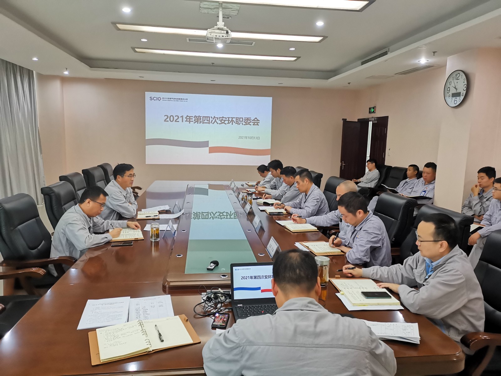 10月13日,川投气电公司组织召开2021年第四次安环职委会,公司在厂领导班子成员及各部门负责人参加了会议。公司党委书记、董事长、安环职委会主任姚欣主持会议。