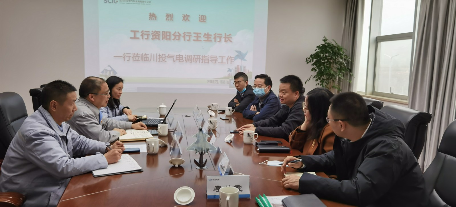 11月23日,工商银行资阳分行行长王生一行到川投气电开展调研,集团派驻财务总监饶明陪同调研。