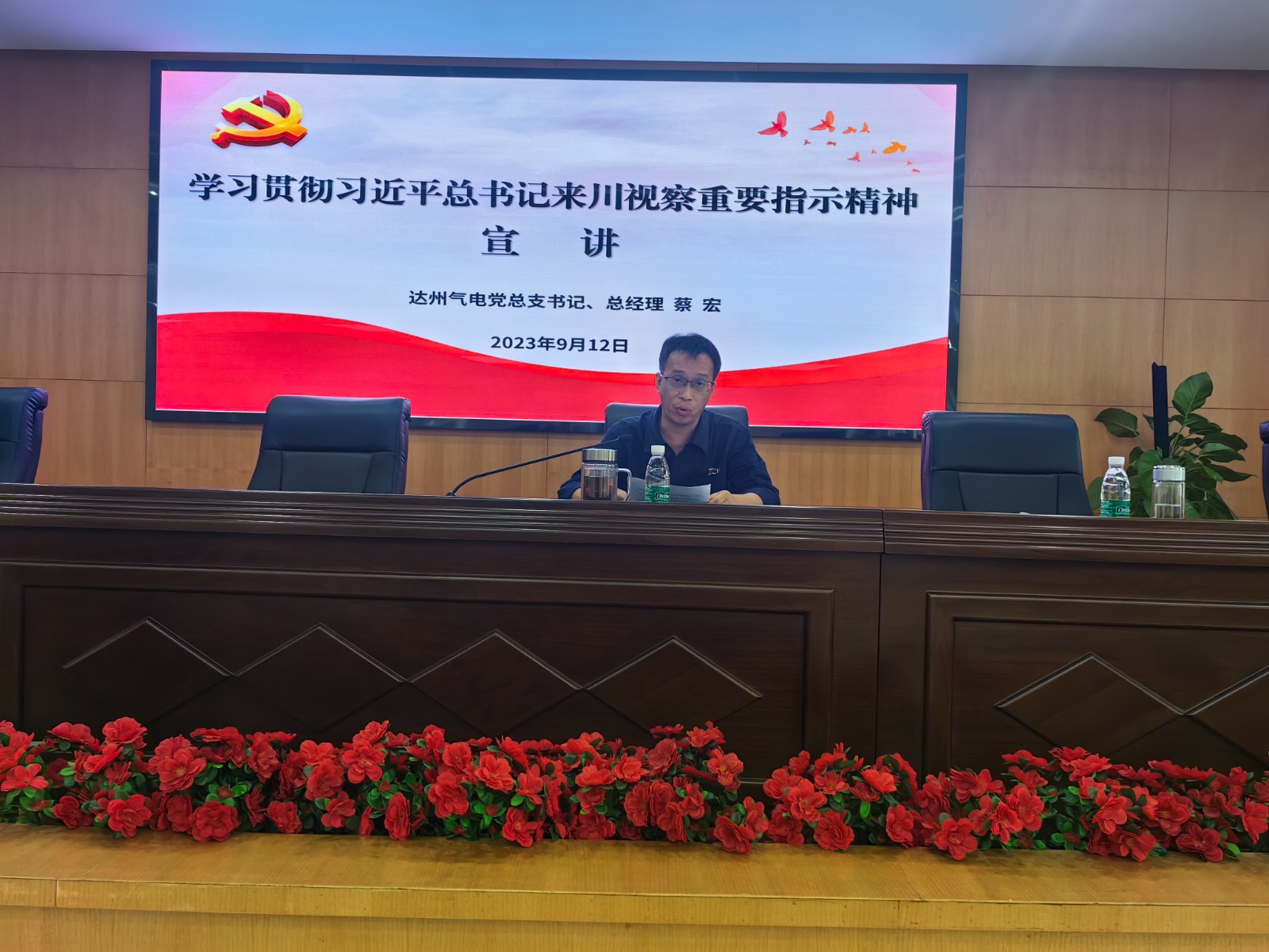 为把学习宣传贯彻习近平总书记来川视察重要指示精神作为当前和今后一个时期的重要政治任务。9月12日,达州气电党总支书记、总经理蔡宏在六楼会议室专题宣讲习近平总书记来川视察重要指示精神。