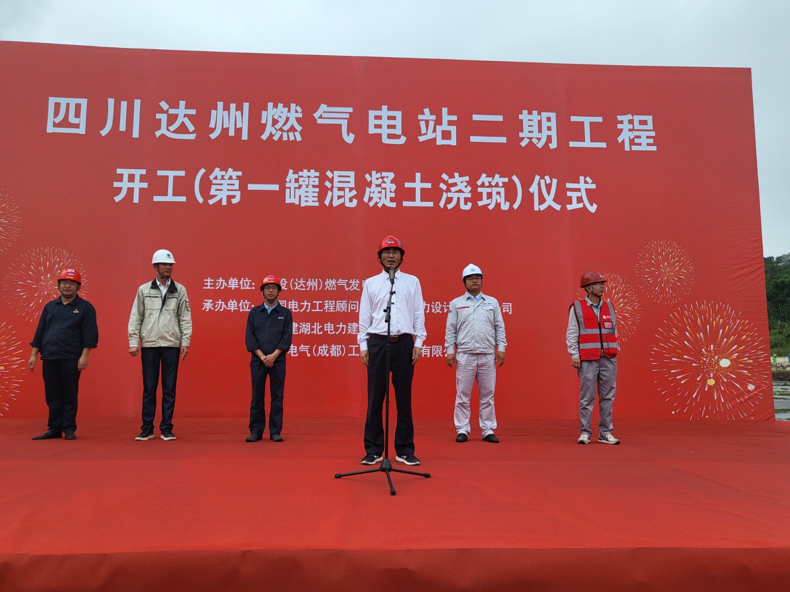 蔡宏致欢迎辞,指出达州气电二期工程第一方混凝土浇灌,是贯彻落实习近平总书记来川视察重要指示精神的生动实践。作为全省天然气发电的先行者和目前四川省唯一一座在运的大型燃机电站,达州气电已连续8年实现机组“零非停”,累计发电165亿千瓦时,缴纳税收4.5亿元,为全川电力保供、电网安全、地方经济发展作出了积极贡献。建设达州气电二期工程,对实现“双碳”战略、优化四川能源结构,完善四川电力供应保障体系具有重要意义。
