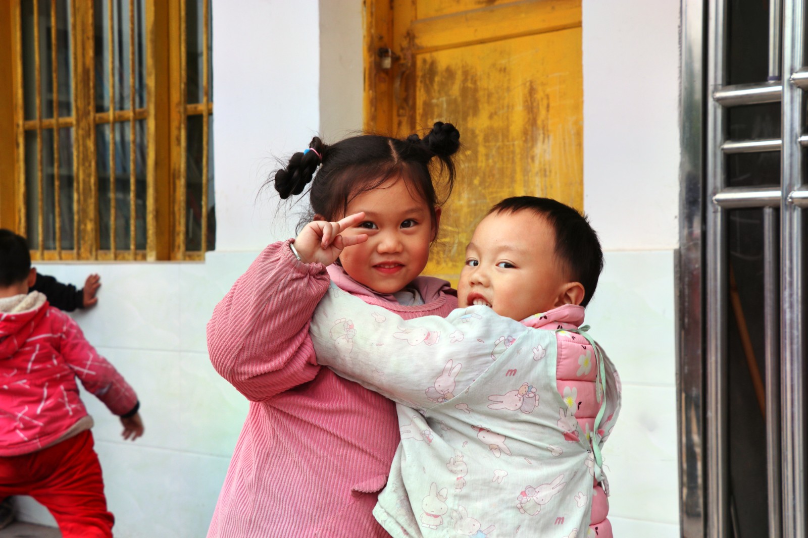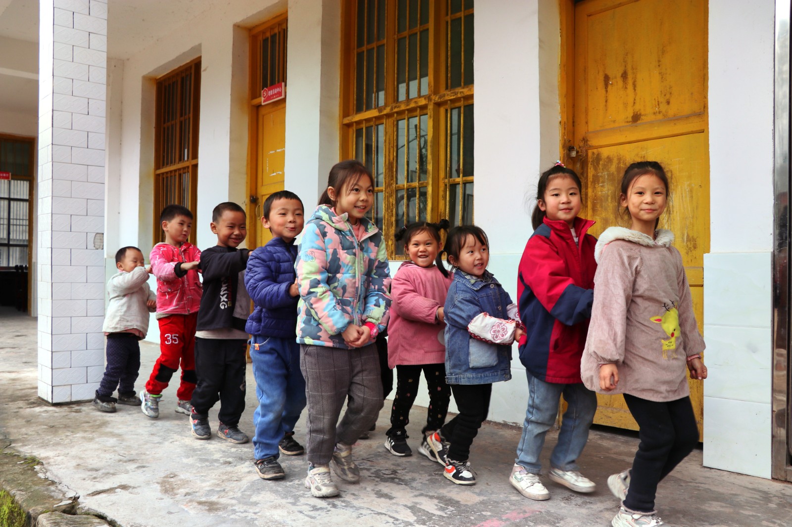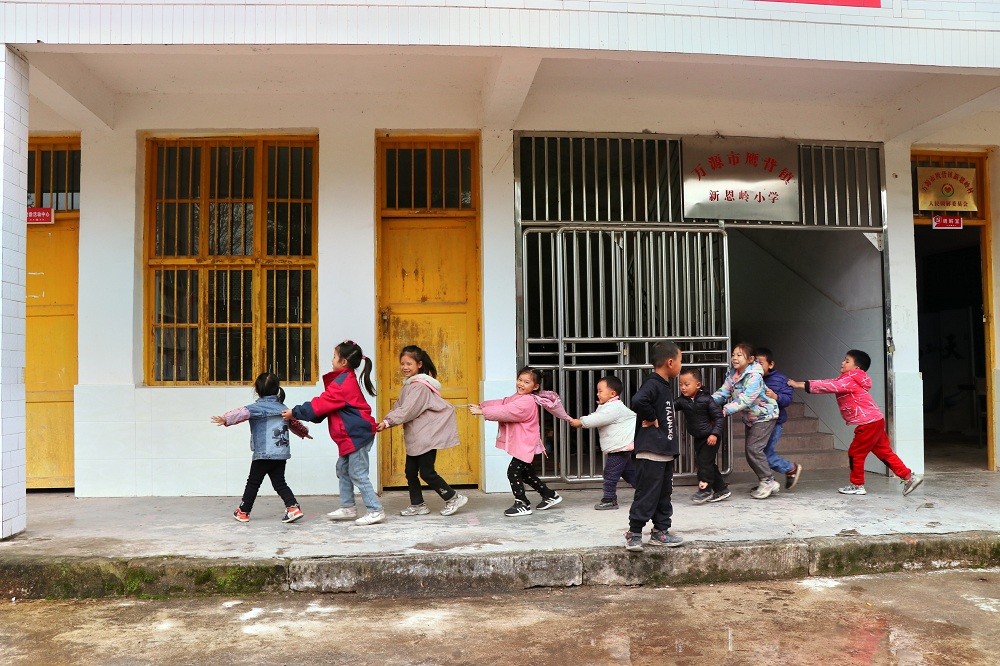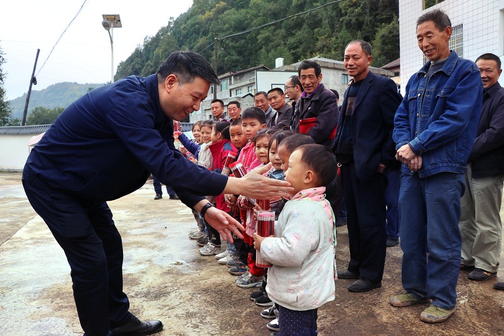 在操场上,达州气电党总支委员李勇一行和新恩岭村村支书苟猛一道,向村民和孩子们发放生活物品,鼓励村民们发展乡村振兴事业,勉励孩子们好好读书天天向上。