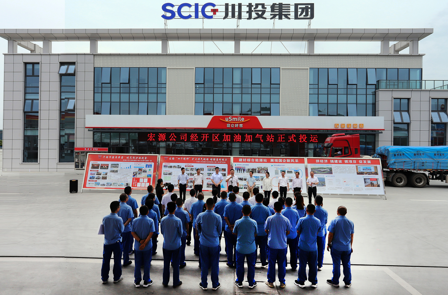 李文志一行深入宏源公司经开区油气合建站,详细了解油气合建站试运营情况并对安全生产提出要求。他指出,要持续开展工作人员安全教育培训,严格落实岗位安全责任、操作规程、日常巡检等安全制度,特别是要强化LNG安全加注操作流程的培训,确保油气合建站安全稳定运行。随后,李文志宣布宏源经开区加油加气站投运。