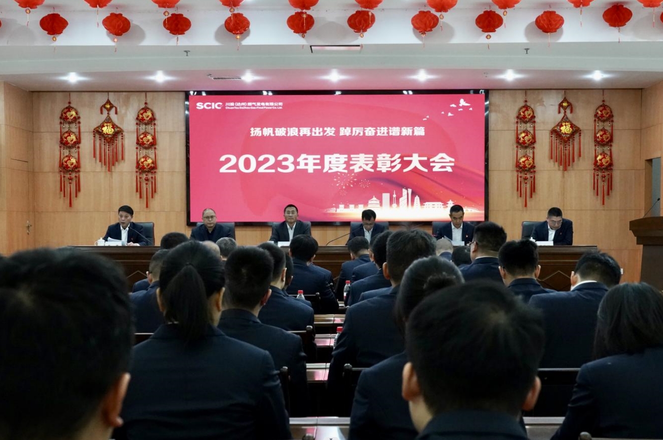 2月4日,达州气电“扬帆破浪再出发 踔厉奋进谱新篇” 2023年度表彰大会顺利举行。达州气电党总支书记、总经理蔡宏,党总支委员、副总经理管立,总经理助理廖安政,受表彰的先进代表、各部门员工代表共120余人参加表彰会。会议由公司党总支委员、职工董事李勇主持;川投燃电党委书记、董事长姚欣,副总经理饶明应邀出席会议。