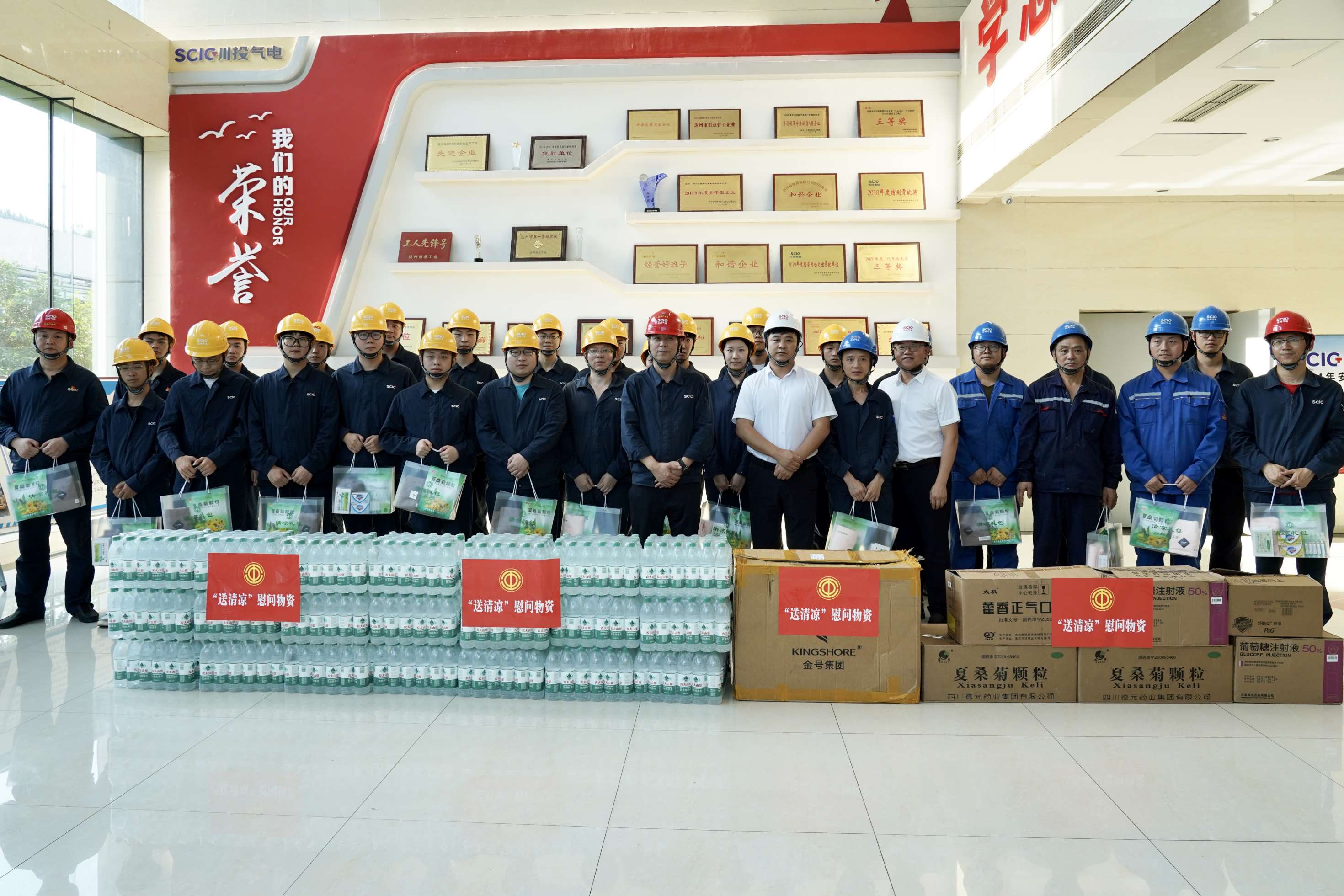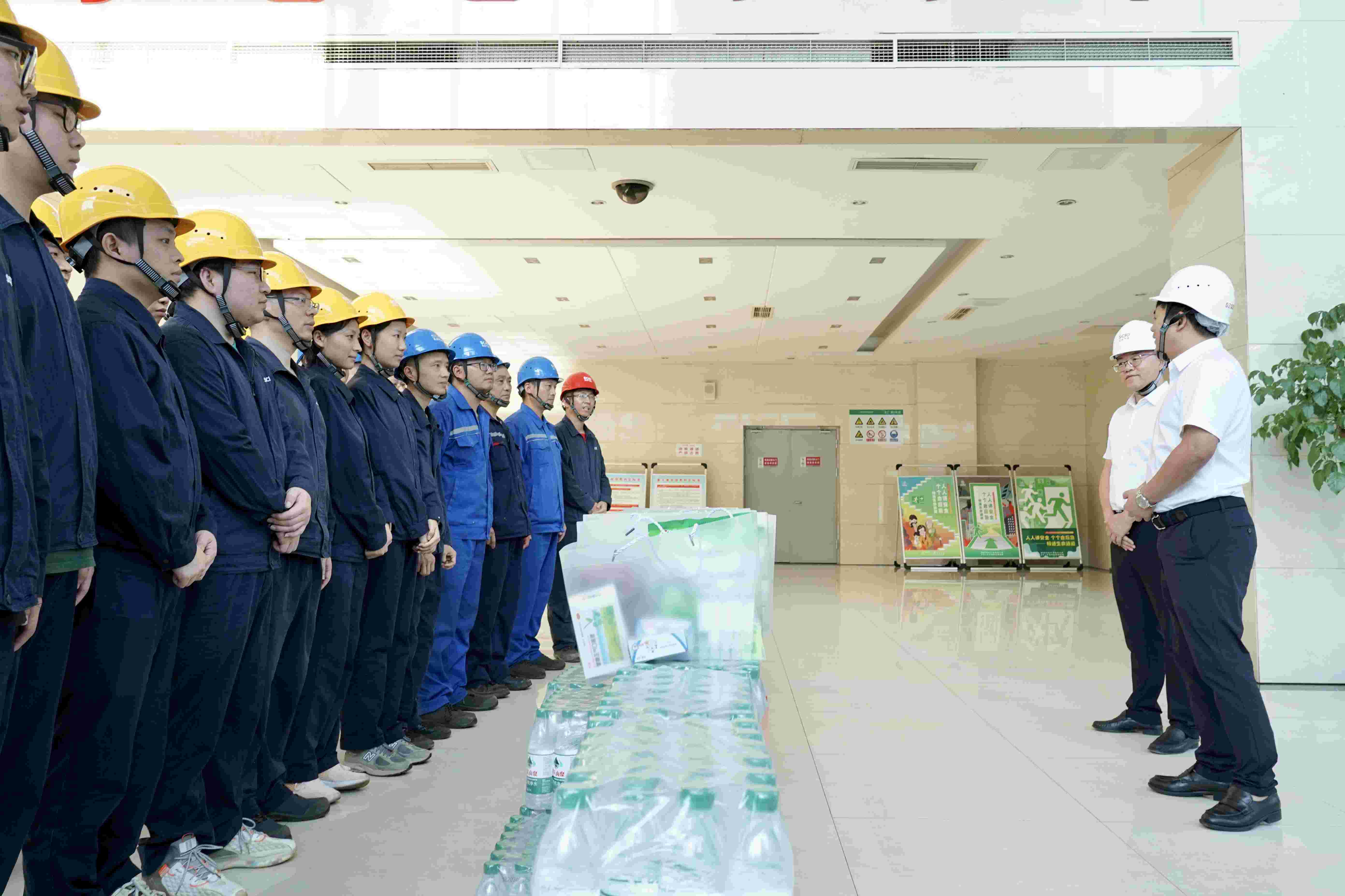 刘海波一行在听取机组发电、防汛减灾等工作汇报后,将风油精、荷香正气液、葡萄糖、矿泉水等100余份充满关爱的清凉防暑物资送到一线检修、运行职工的手中,并与一线职工进行亲切交谈,叮嘱大家工作中注意安全互保,完善防暑降温措施,确保迎峰度夏期间电网安全稳定运行。