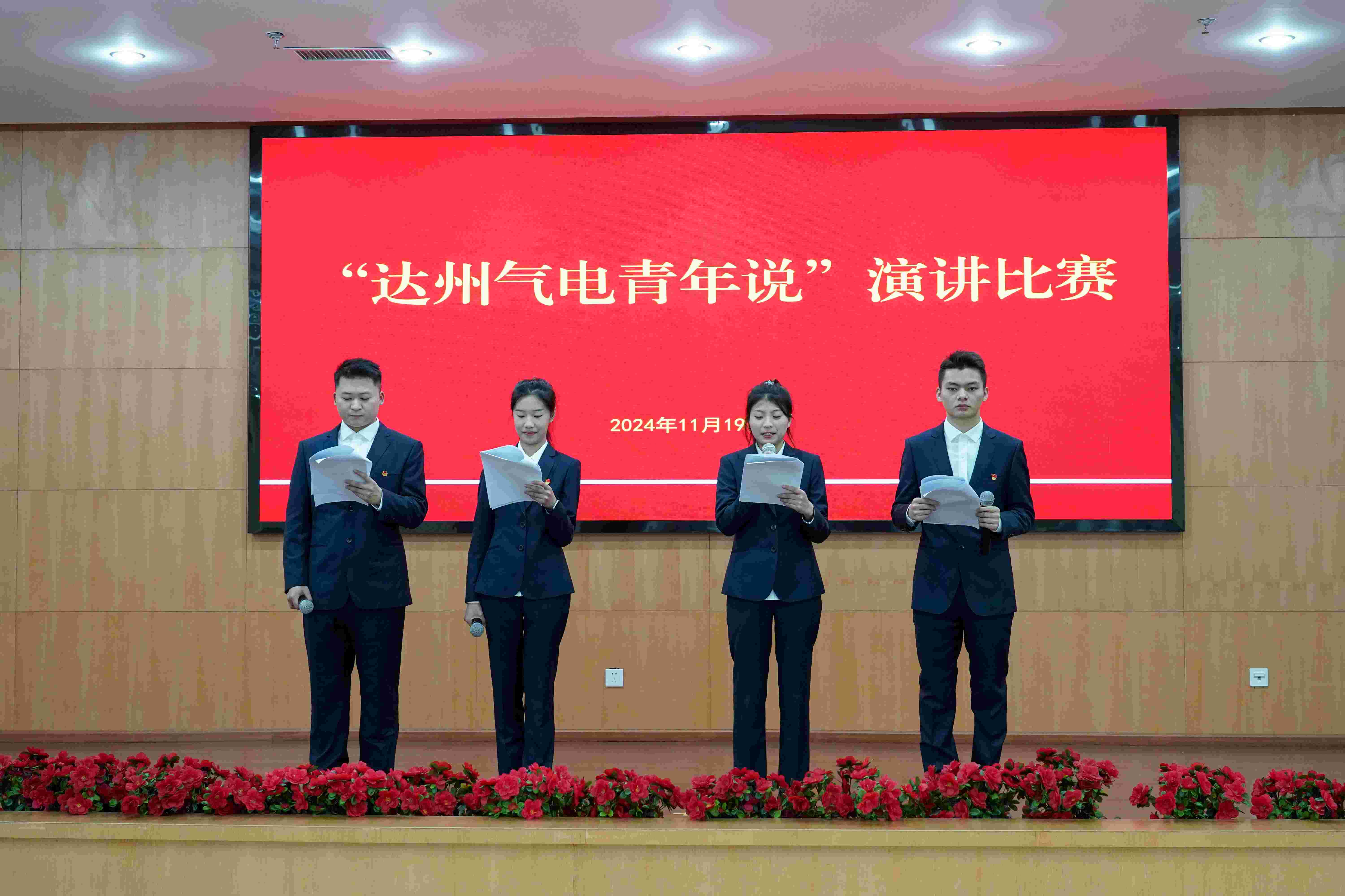 11月19日,达州气电党总支与团总支联合举办“达州气电青年说”演讲比赛。公司党总支书记、总经理蔡宏,副总经理孙勇,党总支委员、职工董事、工会主席李勇出席活动。
