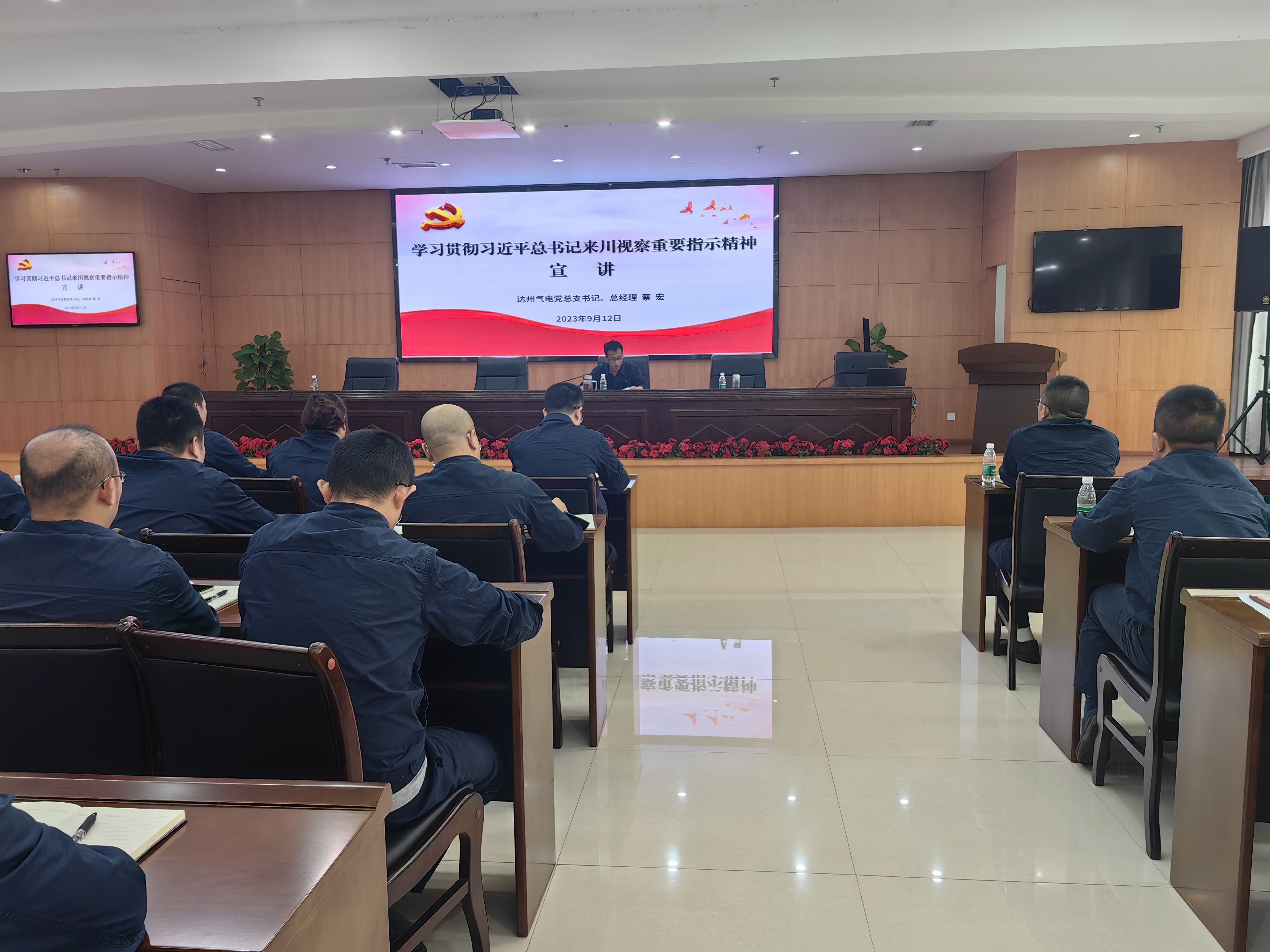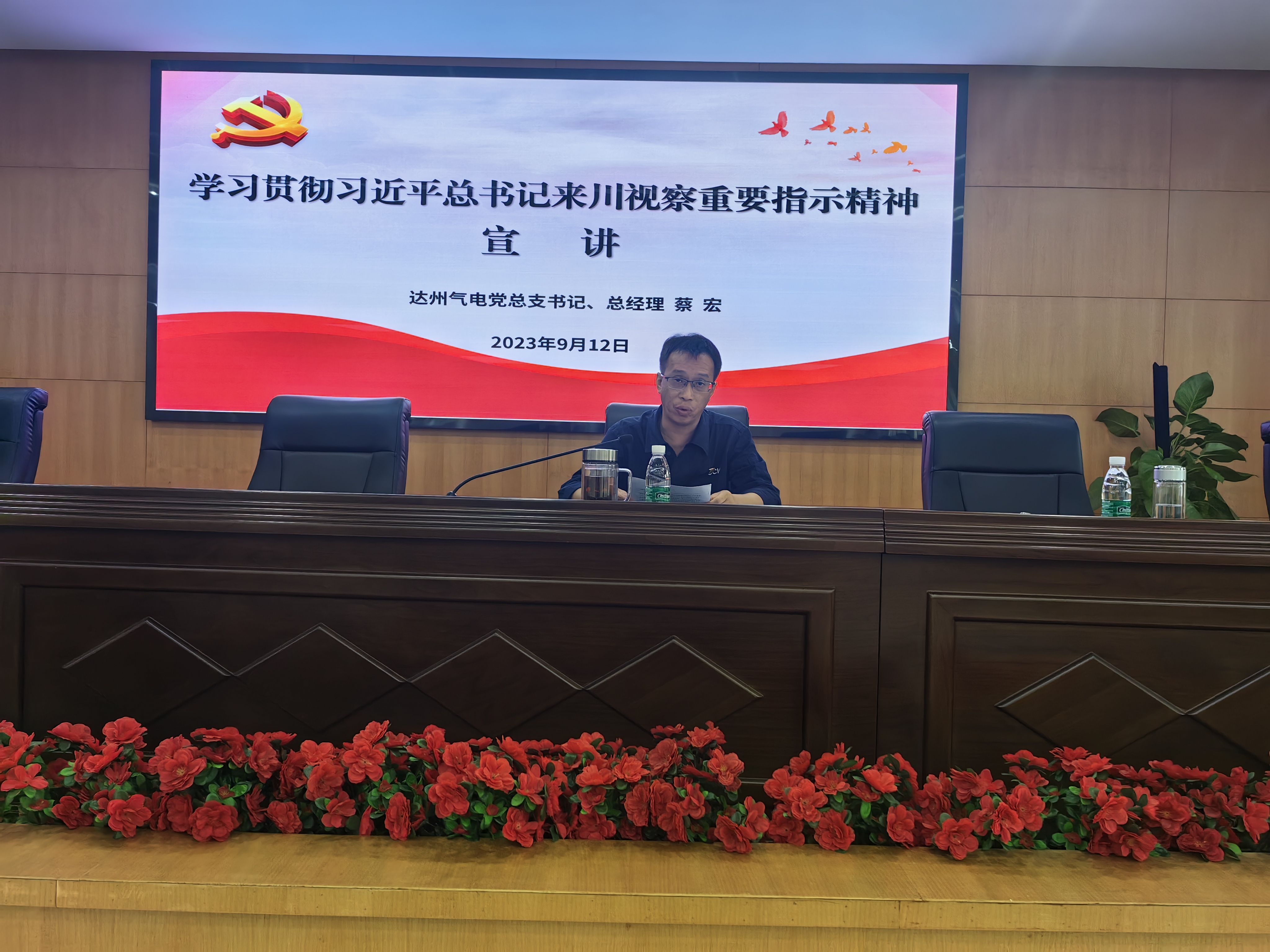 为把学习宣传贯彻习近平总书记来川视察重要指示精神作为当前和今后一个时期的重要政治任务。9月12日,达州气电党总支书记、总经理蔡宏在六楼会议室专题宣讲习近平总书记来川视察重要指示精神。