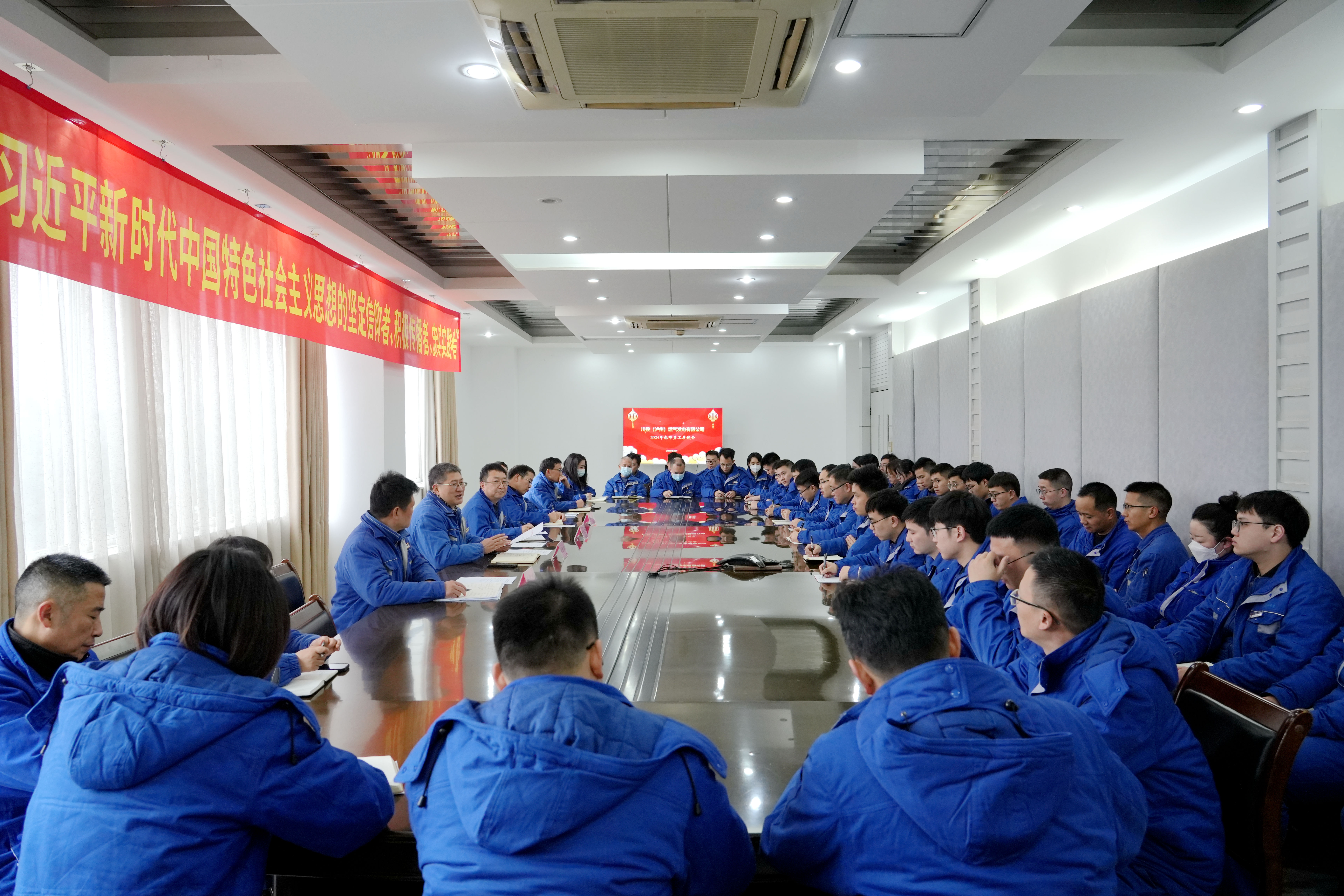 2月4日,在新春佳节即将到来之际,泸州气电召开2024年春节员工座谈会。会议由泸州气电董事长、总经理刘胜金主持。泸州气电副总经理、工会主席李明尧,副总经理张剑平及全体员工参加会议。