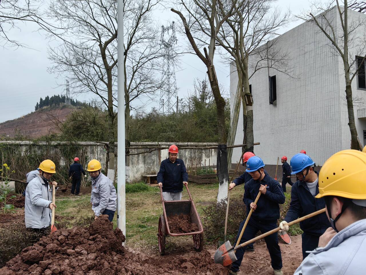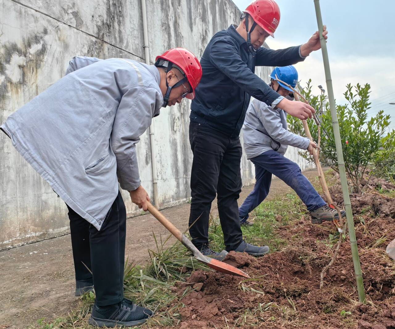 迎着和煦微风,踏着温润泥土,大家分工协作、配合默契,搬运树苗、挥锄挖土、扶苗填坑、挥锹培土、夯实土层、拎桶浇水,合力栽下一棵棵树苗,为站内增添了新的生机与活力,期待来年开花结果。