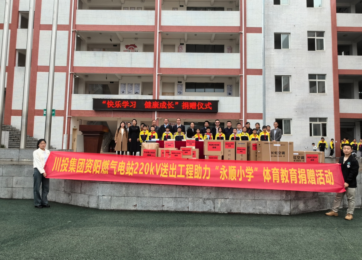 4月10日,川投集团资阳燃气电站新建工程220千伏送出工程项目建设、施工单位一行赴安岳县永顺小学开展“快乐学习 健康成长”爱心捐赠活动。资阳气电副总经理严天元,明远电力集团党总支部书记、董事长黄心宁,安岳县永顺镇镇长李永升、永顺小学校长蒋志辉、副校长唐琴及师生代表参加捐赠活动。