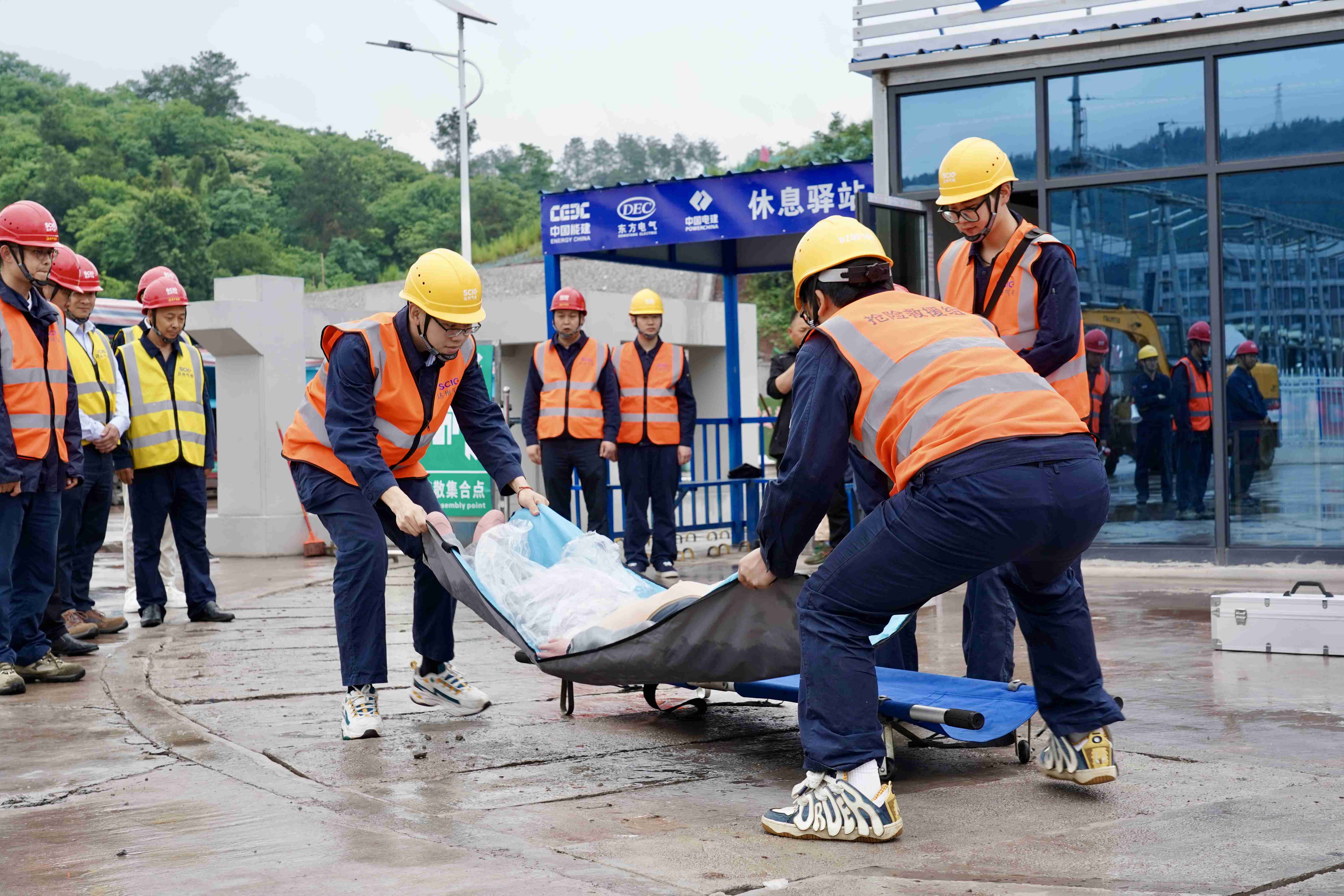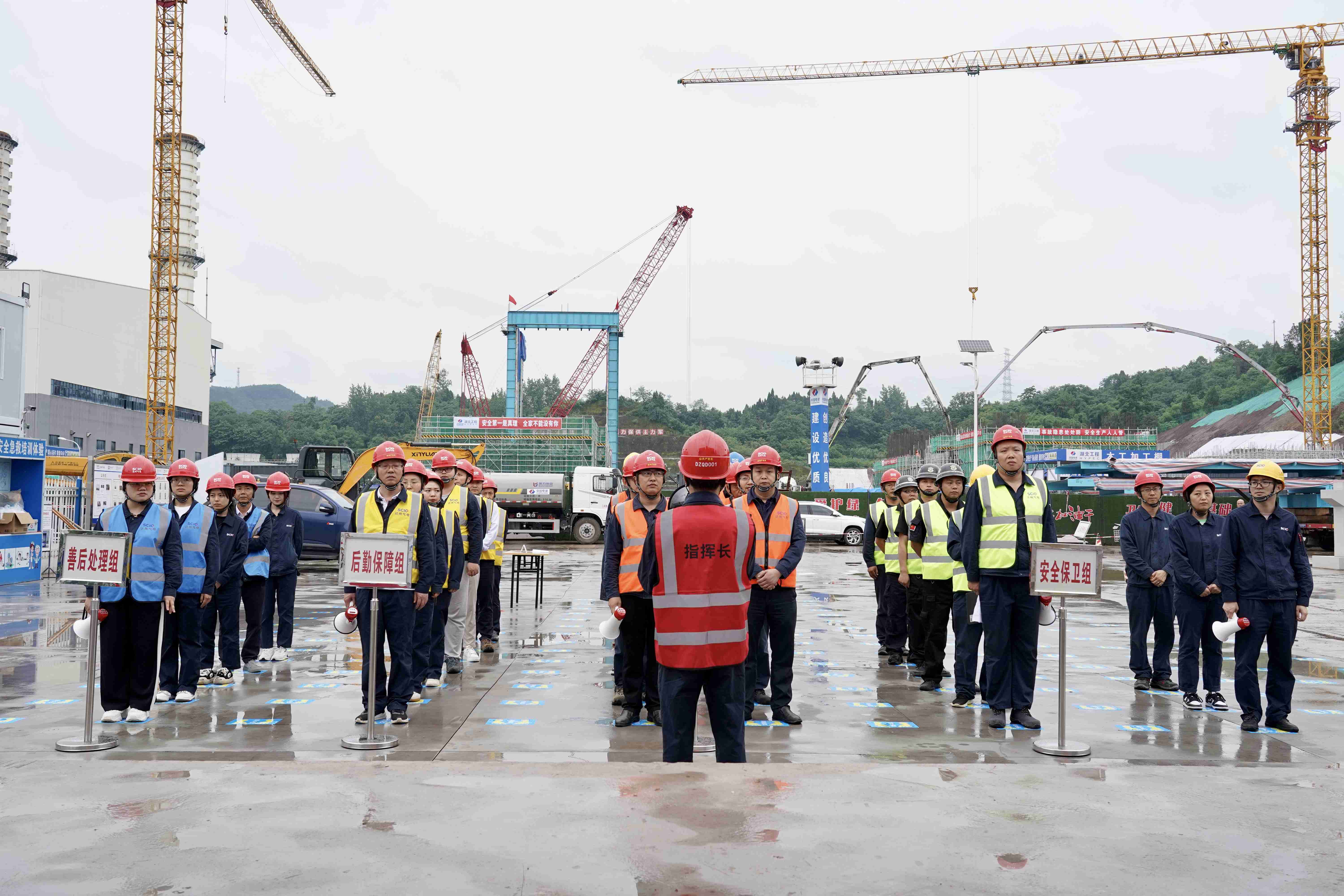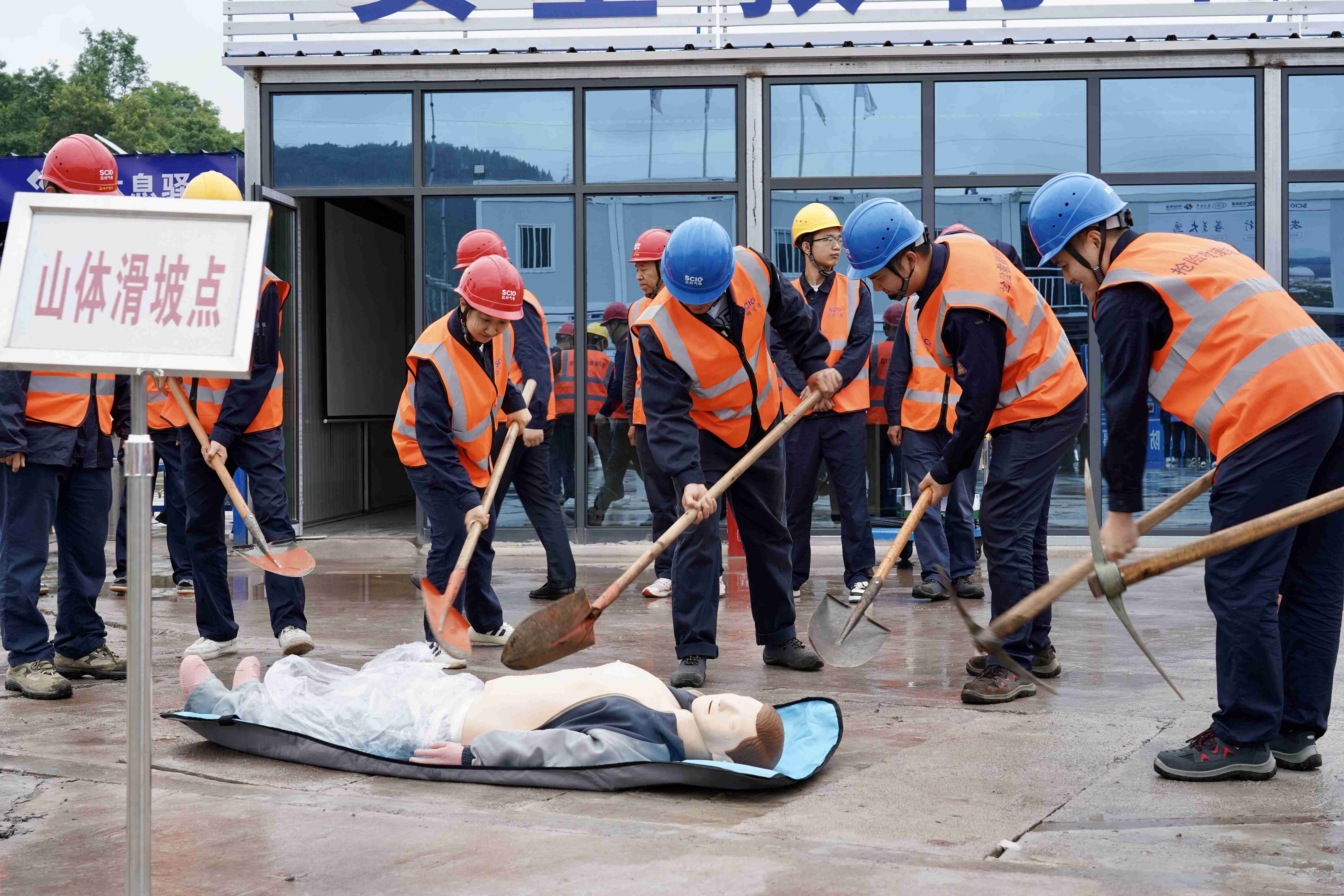 随着总指挥蔡宏的一声令下,演练活动正式拉开帷幕。演练涵盖了指挥调度、交通管制、抢险救援、转移安置、紧急医疗救治、后勤保障等内容。演练模拟的是公司辖区内取水泵房进站道路山体护坡塌方掩埋途经通勤车辆,致使司机及取水泵房值班员2人失联的突发险情。演练中各救援小组凝心聚力、协同发力,确保每个环节衔接紧密,有序开展,组织措施有效、救援迅速准确,达到了以演筑防目的。