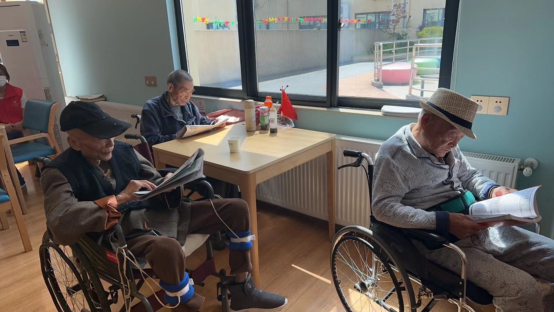 长者们在机构工作人员的引导下,翻开书本,沉醉于书中的情节故事。春日的午后,阳光洒下,与长者的书海漫游共同勾勒出品质晚年生活的美好画卷,共同感受花开花落、岁月静好。