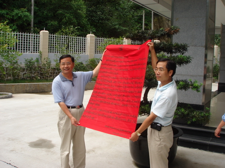 公司总经理孙志祥和副总经理王新高兴地接受喜报