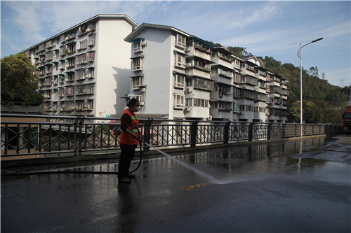 近期,由于天气干燥形成的风扬灰尘、矿区外围道路施工、运输车辆多致使路面积尘量增加,为了防止扬尘污染,嘉阳集团及时采取有效措施进一步加强道路扬尘保洁。采用“机械洒水、洗扫、冲刷”相结合的模式,对矿区道路全面实施巡回清扫、冲刷作业,保持主干道每天上下午各一次洒水降尘,安排专人对内段公路进行机械洒水作业,尽可能减少扬尘污染。同时,强化环境卫生日常作业的常态化管理,并结合防疫要求,及时对生活区排水沟、下水管道进行清掏、疏通,对重点路段区域定时喷洒消毒药水,安排环卫工人沿途捡拾路边烟头杂物等,为疫情防控提供环境卫生保障,筑牢防疫安全线。