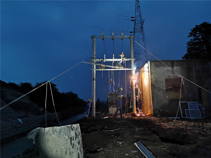 洪水过后,百花滩干部员工第一时间启动抢修重建任务,迅速制定方案、绘制图纸开展生产自救,相继克服村民阻工、交通不畅、连续阴雨、酷暑炎热等不利条件,于9月2-3日完成过江线路架设和恢复带电运行,电厂顺利上网发电恢复生产秩序。18日,泵站房屋修建完工后,电站维护班立即投入紧张的配电屏柜安装调试,员工争分夺秒,坚持用餐在一线、休息在工地、压茬接着干,连续加班加点至深夜,最终在维护班全体同事的共同努力下,6台排水泵顺利恢复正常运行,青衣江“8.18”洪灾对电站造成的损失进一步减少。