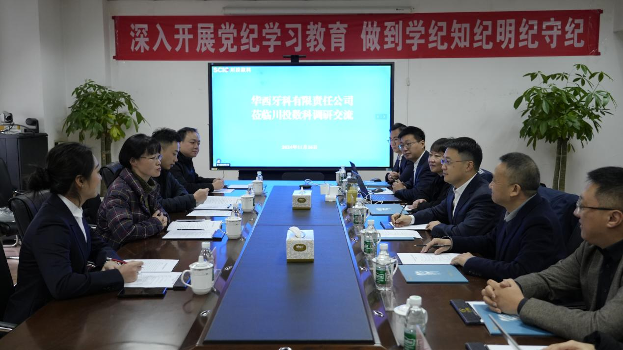 11月26日,华西牙科有限责任公司(简称:华西牙科)党委副书记、工会主席金晶一行赴川投数科(全称:四川川投智胜数字科技有限公司,原简称:智胜集成)参观调研。
